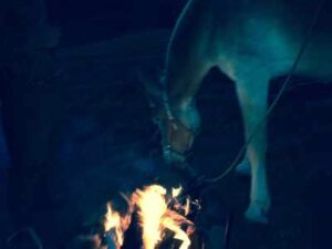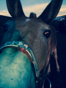 Wes hadn’t raised Rosie from a foal, though it seemed like that. He had traded for her as a young adult jenny. But once wearing his brand, she had imprinted on him as though he were her long-lost mother, or maybe her one true love. Affection is rarely so pure. It was like something out of Faulkner. (I think in particular of Ike Snopes and his beloved cow, in The Hamlet, but with the roles reversed.) Wes returned the affection, within reason, but he also demanded a modicum of mulish comportment. If she straddled the fire too closely for too long, he would reach out and touch her belly, commenting drily, “I’ve eaten steaks colder than that,” and then shoo her away. If she misbehaved, sneaking into the cook tent and helping herself to horse cubes from the bag, he would scold her and brandish her halter, signaling a threat to be tied to a tree, like a common mule. At that, she would squeal and dash guiltily away. Returning ten minutes later. She was smart and spoiled.